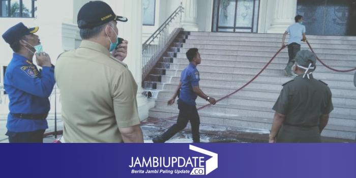 Kegiatan tersebut sudah berlangsung sejak sepekan terkahir. Hari ini (30/3), Tim gugus tugas Kota Jambi melakukan penyemprotan di gedung-gedung pemerintah di Kawasan Telanaipura Kota Jambi.