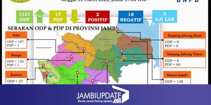 JAMBIUPDATE.CO, JAMBI - Gugus tugas penanganan virus corona (Covid19) Provinsi Jambi mengumumkan perkembangan corona hingga pukul 17.00 WIB pada 31 Maret.