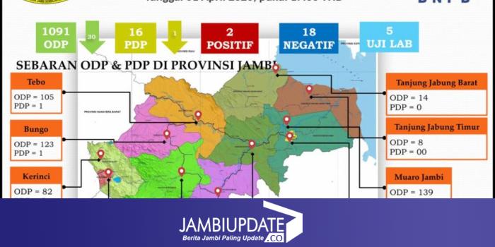 JAMBIUPDATE.CO, JAMBI - Tim gugus tugas penanganan Covid19 Jambi mengumumkan update data hingga pukul 17.00 WIB (1/4). Hasilnya untuk Orang Dalam Pemantauan (ODP) berjumlah 1091.