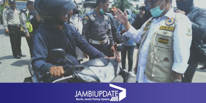 Pantauan dilapangan, orang yang masuk ke Kota Jambi ditanyakan tujuan, diperiksa suhu tubuh dan disemprot disinfektan.