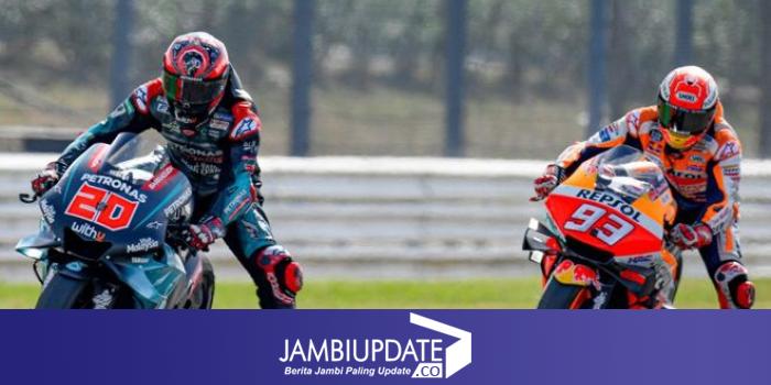 iklan DUEL: Rider Petronas Yamaha Fabio Quartararo (kiri) beradu cepat dengan pembalap Honda Marc Marquez (kanan).
