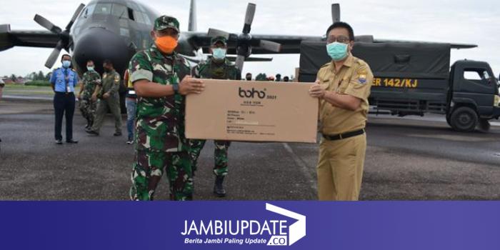 Lebih lanjut Hatta menjelaskan bahwa 2000 pcs (40 koli) Alat Pelindung Diri (APD) untuk penanganan Covid-19 Bantuan dari Kementerian Kesehatan RI tersebut tiba di Bandara Sultan Thaha Jambi sekira pukul 08.37 WIB dengan menggunakan Pesawat C-130 Hercules A-1317 TNI AU.