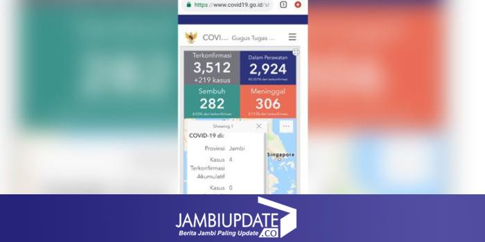 JAMBIUPDATE.CO,JAMBI - Pasien positif virus corona Jambi resmi bertambah jadi 2 orang, pada 11 April. Ini setelah pengumaman tim gugus tugas pusat. Jadi hingga hari ini total sudah ada 4 Positif Corona di Jambi.