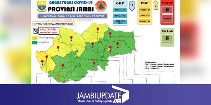 Enam daerah itu yakni daerah yang telah menyumbang pasien positif untuk Provinsi Jambi. Tampak daerah yang masuk zona waspada Kota Jambi dan Kabupaten Bungo dengan masing-masing 2 orang positif.