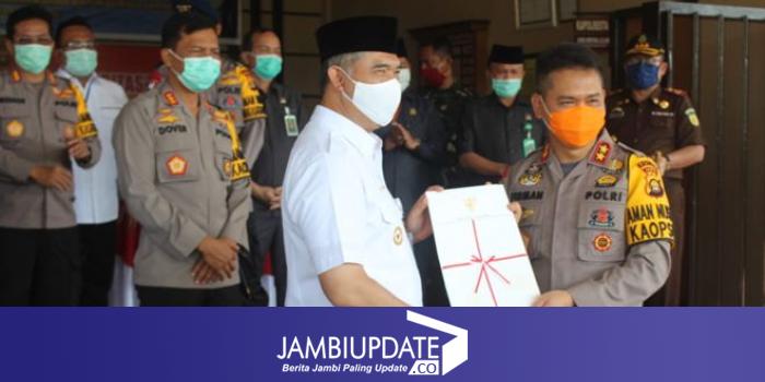 Sementara itu, Walikota Jambi Syarif Fasha menyerahkan bantuan kendaraan dinas kepada Polresta Jambi yang diterima langsung oleh Kapolresta Jambi Kombes Pol Dover Cristian.