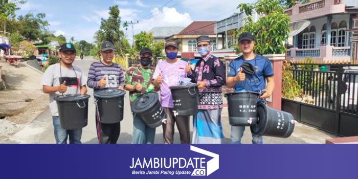 Kamis (23/4), Pemdes Ujung Pasir membagikan masker, ember yang dilengkapi kran serta sabun cuci tangan kepada warga. (Asmawi / Jambiupdate)