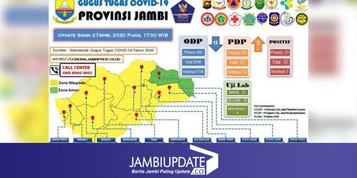 JAMBIUPDATE.CO, JAMBI - Juru bicara gugus tugas penanganan Covid19 Provinsi Jambi Johansyah mengumumkan perkembangan Corona pada 27 April hingga pukul 17.00 WIB.