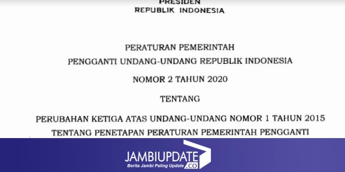 JAMBIUPDATE.CO, JAMBI- Peraturan Pemerintah Pengganti Undang-Undang (Perppu) Nomor 2 Tahun 2020. LL, resmi diteken dan diterbitkan oleh Presiden Joko Widodo.