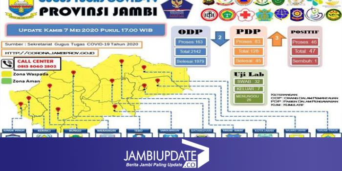 JAMBIUPDATE.CO, JAMBI - Gugus tugas penanganan Covid19 Provinsi Jambi mengumumkan perkembangan corona 7 mei hingga pukul 17.00 WIB.