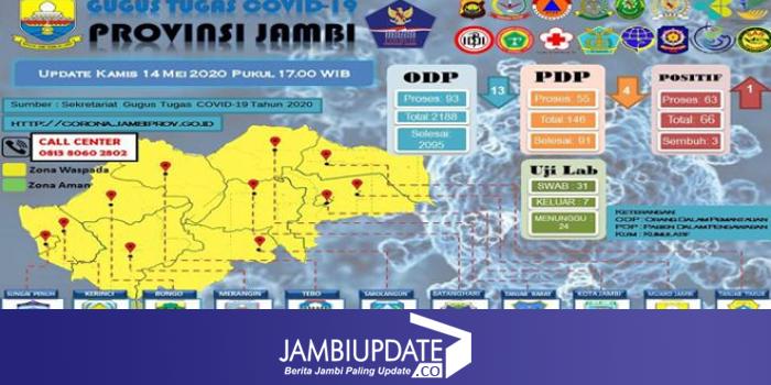 JAMBIUPDATE.CO,JAMBI - Provinsi Jambi bertambah 1 pasien positif Covid19 pada hari ini (14/5). Tambahan 1 orang ini berasal dari Kabupaten Muaro Jambi.