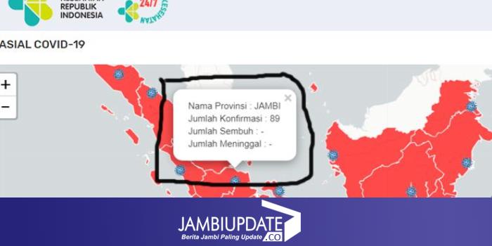 Keterangan ini seperti dilansir pada situs pusatkrisis.kemkes.go.id. yang diakses Jambiupdate pada pukul 16.05 WIB. Disana tertulis kasus terkonfirmasi ada 89 kasus, dimana 4 orang diantaranya sudah dinyatakan sembuh. Atau kini ada 85 orang Positif Covid19 yang sedang dalam perawatan.