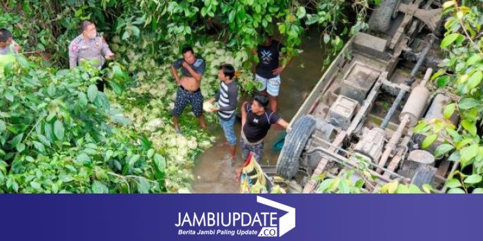 JAMBIUPDATE.CO, KERINCI - Truck bermuatan sayur nyungsep masuk jurang di jalan lintas Kerinci - Bangko tepatnya di Jalan raya Desa Muaro Emat, Kecamatan Batang Merangin, Kabupaten kerinci.