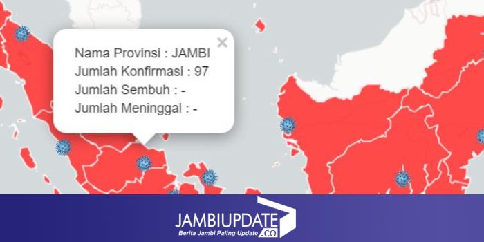 JAMBIUPDATE.CO,JAMBI - Situs www.pusatkrisis.kemkes.com mencatat tak ada penambahan kasus positif Covid19 baru di Provinsi Jambi. Pada situs yang diakses Jambiupdate pada Minggu (31/5) pukul 16.15 WIB menunjukkan positif masih 97 kasus dan sembuh 15 orang. Keterangan situs Kementerian Kesehatan ini menunjukkan data telah diperbarui pada pukul 16.00 hari ini.
