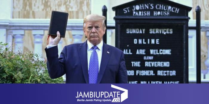 Trump memang ke gereja kemarin. Lalu berfoto di situ. Dengan mengacungkan Injil di tangannya. Maksudnya: ia tidak takut keluar dari Gedung Putih --untuk ke gereja itu.