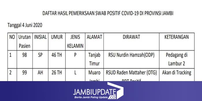 BACA JUGA : BREAKING NEWS !! Positif Covid19 Jambi Bertambah 2 Jadi 99 Orang, Sembuh Bertambah 10