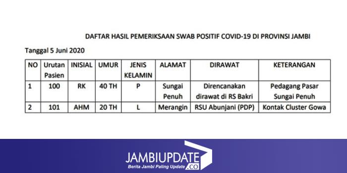 BACA JUGA : Tembus Tiga Angka !! Positif Covid19 Provinsi Jambi Bertambah 2 Jadi 101 Orang, Sembuh Nihil