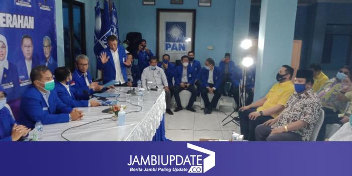 Pada kesempatan itu, para rombongan disambut oleh Sekretaris DPW PAN Provinsi Jambi Khusaini dan Ketua Tim Pilkada PAN Jambi Yos Adrino beserta jajarannya.