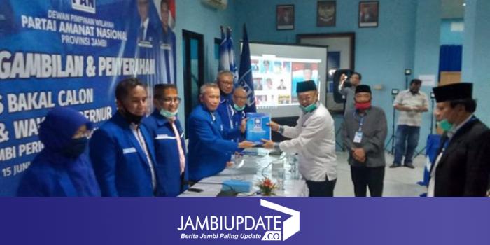 Cek Endra yang tiba didampingi Ketua Tim Pemenangan, Kemas Arsyad Somad, dan tim lainnya langsung disambut Ketua DPW PAN Provinsi Jambi, H. Bakri dan Tim Penjaringan Pilgub PAN Jambi.