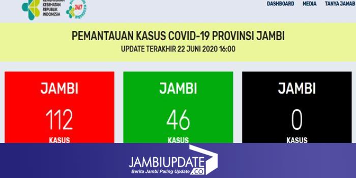 JAMBIUPDATE.CO,JAMBI - Jumlah pasien positif Covid19 tak mengalami bpenambahan pada hari ini (22/6). Total kasus sejauh ini masih berjumlah 112 kasus, dan pasien sembuh masih 46 yang sembuh.