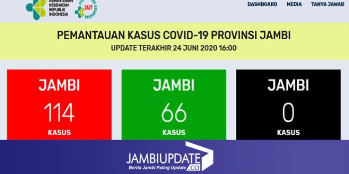 JAMBIUPDATE.CO, JAMBI - Jumlah pasien positif Covid19 tak mengalami penambahan pada hari ini (24/6). Total kasus sejauh ini tak beranjak dari angka kemarin, yakni 114 kasus.
