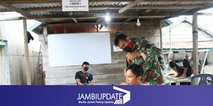 JAMBIUPDATE.CO, KUALATUNGKAL- Sebagai wujud kepedulian kepada warga Desa labuhan Pering untuk menanamkan kerapian sejak dini, Anggota Satuan Tugas (Satgas) TNI Manunggal Membangun Desa (TMMD) ke 108 Kodim 0419/Tanjab membuka layanan pangkas rambus gratis bagi warga di lokasi TMMD, Rabu (8/7/2020).