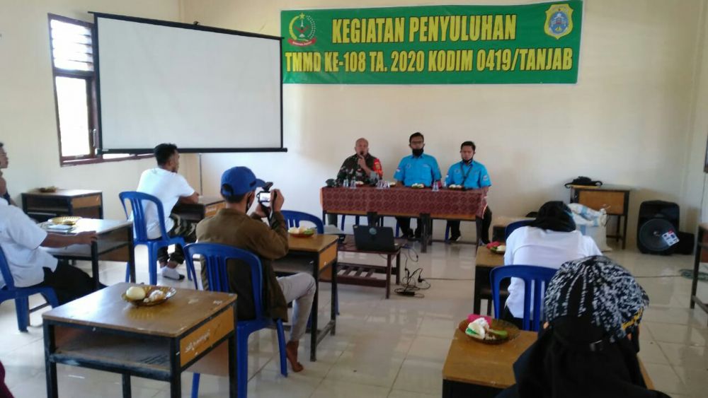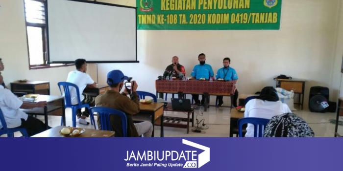JAMBIUPDATE.CO, JAMBI – Satgas TMMD ke-108 bekerja sama dengan Badan Narkotika Nasional (BNN) Kabupaten Tanjab Timur melaksanakan Disiminasi Informasi Penyuluhan, Pencegahan, Pemberantasan, Penyalahgunaan dan Peredaran Narkoba (P4GN) melalui media penyuluhan di lingkungan masyarakat Desa Labuhan Pering, Kecamatan Sadu, Rabu (15/7/2020).