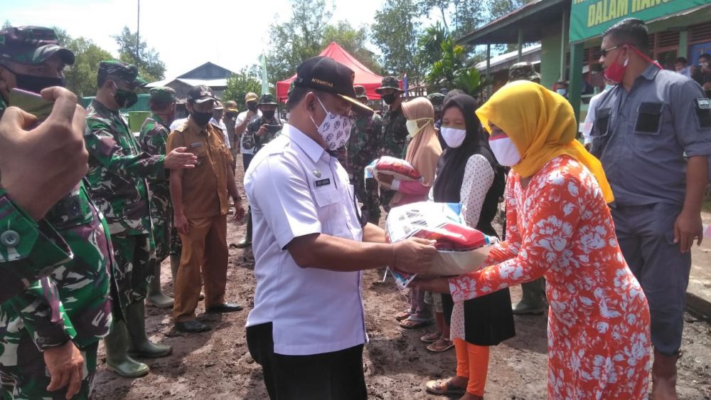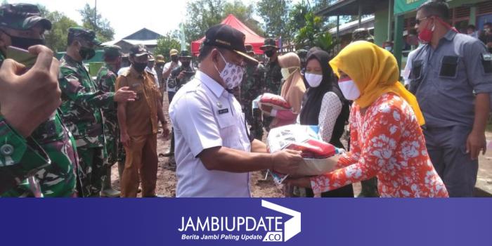 JAMBIUPDATE.CO, JAMBI - Disamping menyambut kedatangan Tim Wasev TMMD ke-108 Kodim 0419/Tanjab yang dipimpin oleh Mayjen TNI Arif Rahman, M.A dan di dampingi oleh Komandan Korem 042/Gapu Brigjen TNI M. Zulkifli, S.I.P, M.M, Bupati Tanjabtim diwakili Asisten II Agus Sadikin (Rabu, 15/07/2020) turut berikan bantuan sembako untuk warga Desa Labuhan Pering, Kecamatan Sadu, Kabupaten Tanjab Timur.