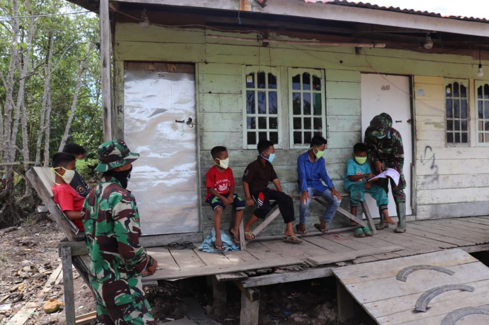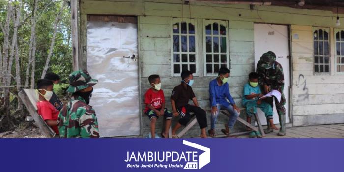 JAMBIUPDATE.CO, JAMBI- Pada masa pandemi ini pemerintah memberikan himbauan untuk seluruh kegiatan belajar mengajar untuk dilaksanakan di rumah masing-masing. Satgas TMMD 108 Kodim 0419/Tanjab berinisiatif untuk membantu mengajar para siswa SD yang berada di Desa Labuhan Pering , Kecamatan Sadu, Kabupaten Tanjab Timur.
