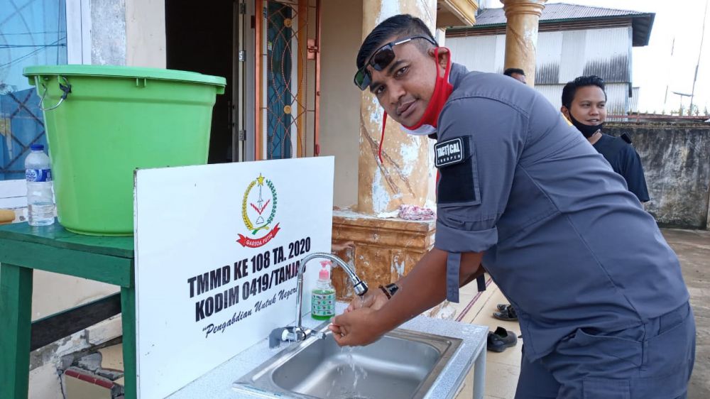 Setiap tamu akan ditegur jika tanpa masker, dan wajib cuci tangan. Kedisplinan tersebut telah disosialisasikan satgas TNI Manunggal Membangun Desa (TMMD) 108 Kodim 0419 Tanjab sejak dari awal berjalannya program.