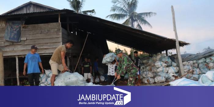 JAMBIUPDATE.CO, JAMBI - Anggota Satgas TMMD Reg 108 Kodim 0419/Tanjab dalam perjalanan pulang dari lokasi pengerjaan fisik TMMD yaitu pembuatan Jembatan mendatangi warga yang sedang memuat Kelapa ke pompong (Perahu) untuk melansir ke KM "Ari Jaya" milik Pak Pandu, Selasa (21/7/2020).