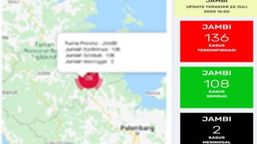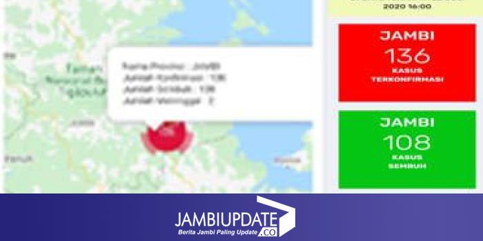 JAMBIUPDATE.CO,JAMBI - Angka terkonfrmasi (positif) Covid19 Provinsi Jambi bertambah 2 orang pada hari ini (22/7). Total kasus sudah 136, dimana 26 masih dirawat diruang isolasi, dan 108 sudah dinyatakan sembuh.