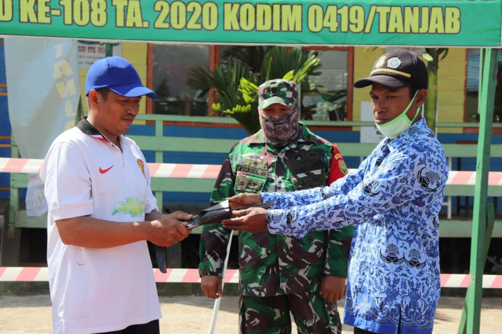 JAMBIUPDATE.CO, JAMBI - Melalui program TMMD, Satgas berikan bantuan Alat pengolahan pasca panen hasil perkebunan, dimana dalam kegiatan tersebut memberikan bantuan berupa alat pengolahan pasca panen bagi petani kelapa dari Dinas Perkebunan Tanjab Timur didampingi Pasiter Satgas TMMD ke-108 Kodim 0419/Tanjab Kapten Inf Safri Napitupulu di Lokasi Posko TMMD Desa Labuhan Pering, Rabu (22/7/2020).