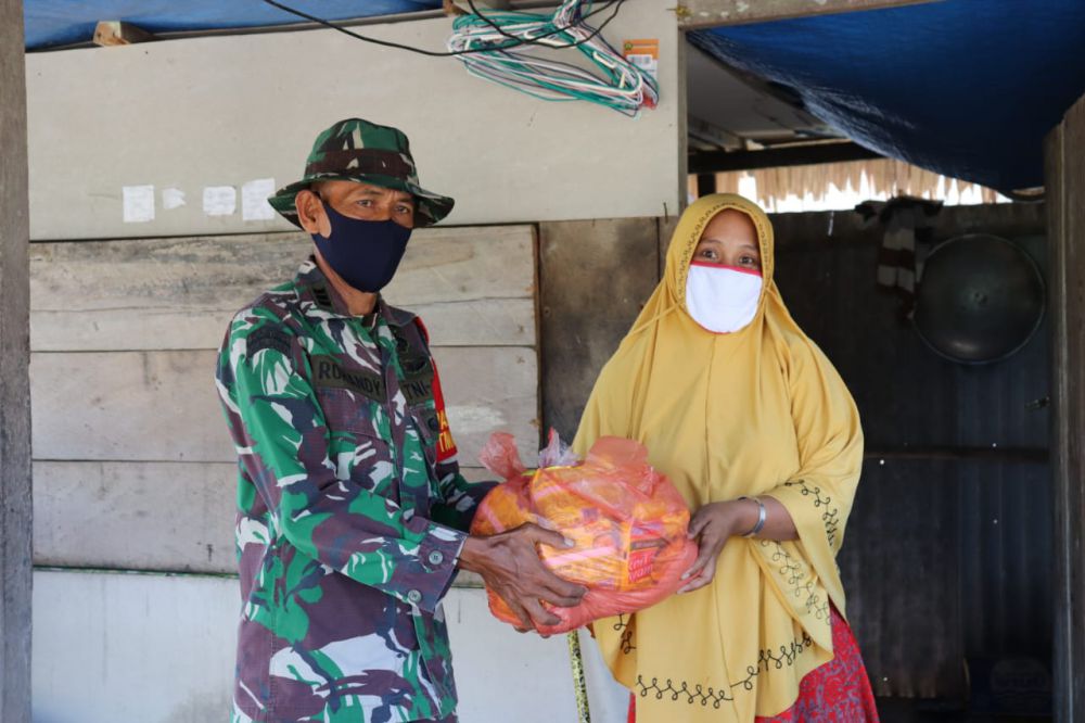 Melihat keadaan ini, Satgas yang berada di Desa Labuhan Pering berinisiatif untuk membagikan Sembako kepada warga yang ada di sekitar lokasi TMMD, hal ini rutin dilakukan, seperti hari ini personel Satgas pimpinan Pasilog, Kapten Inf Rohandy membagikan bantuan Sembako di sekitar RT 01 Dusun 1 Sungai Kapas Desa Labuhan Pering, Kecamatan Sadu, Kabupaten Tanjab Timur, Jambi, Kamis (23/7/2020).