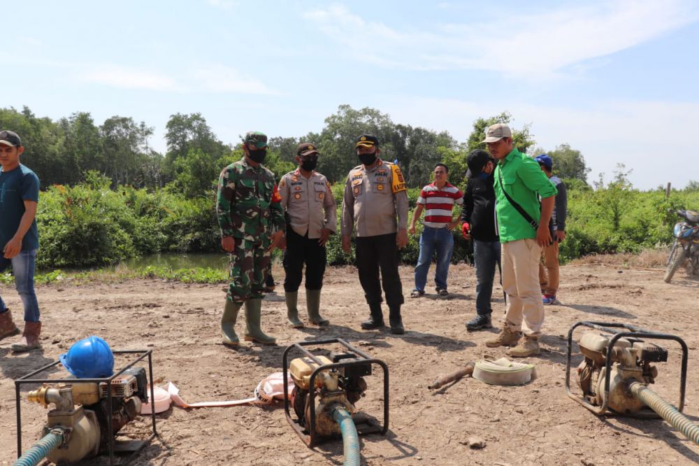 JAMBIUPDATE.CO, JAMBI - Dandim 0419/Tanjab Letkol Inf Erwan Susanto selaku Dansatgas TMMD 108, bersama Kapolres Tanjab Timur AKBP Deden Nurhidayatullah mengecek kesiapan sarana dan prasarana penanggulangan Karhutla di PT. Indo Kebun Lestari Sei Benuh Estafe Desa Labuhan Pering.