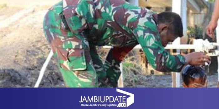 JAMBIUPDATE.CO,JAMBI -,Gembiranya bocah yang sedang mandi di Sumur Bor yang dibangun ole Satgas TMMD Kodim 0419 Tanjab. Betapa tidak, kini mereka sudah bisa menikmati mandi dengan Air bersih tanpa harus pergi ke sungai.