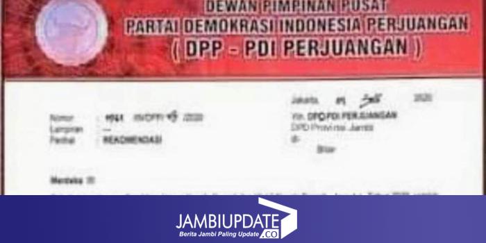 Pada surat tersebut disebutkan rekomendasi diberikan kepada Dr. Drs. H. Fachrori Umar, MHum sebagai calon gubernur Jambi dan Dr. Ir. H. Safrial, M.Si sebagai calon wakil gubernur Jambi periode 2020-2024 yang di usung PDI Perjuangan.