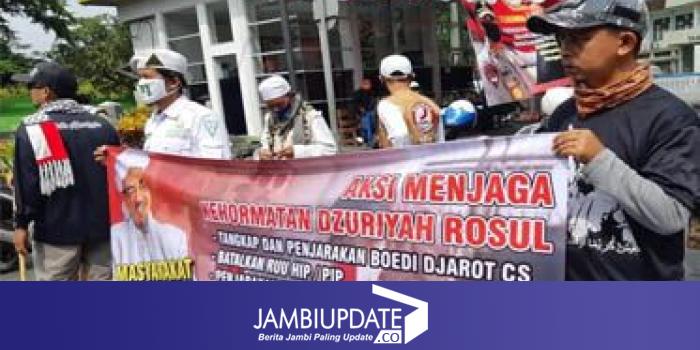 JAMBIUPDATE.CO, TASIKMALAYA- Ratusan massa yang tergabung dalam Masyarakat Muslim Tasikmalaya melalukan aksi unjuk rasa di sekitar Taman Kota Tasikmalaya, Rabu (05/08) siang.