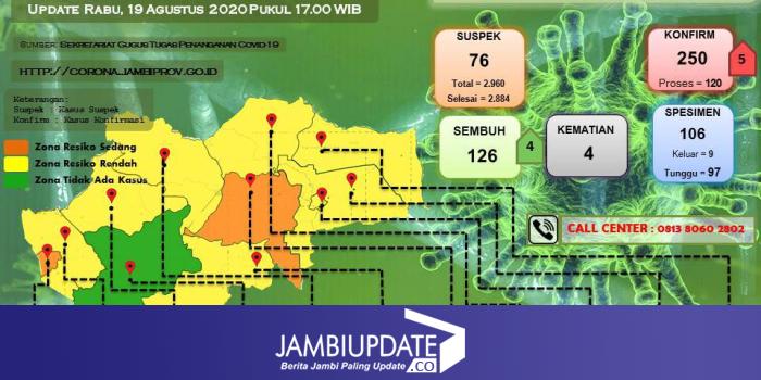 JAMBIUPDATE.CO, JAMBI - Juru bicara gugus tugas Covid19 Provinsi Jambi Johansyah mengumumkan 5 positif tambahan baru hari ini (19/8).