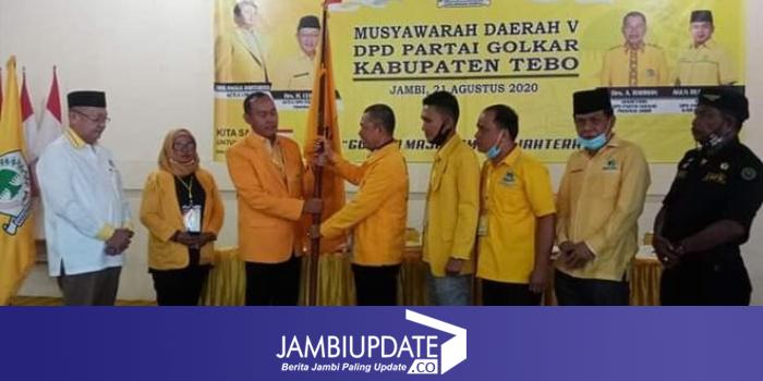 JAMBIUPDATE.CO, JAMBI- Bupati Tebo, Sukandar resmi menahkodai Partai Golkar Kabupaten Tebo periode 2020-2025 setelah terpilih secara aklamasi di Musyawarah Daerah (Musda) DPD II Golkar Tebo, Jumat (21/8).