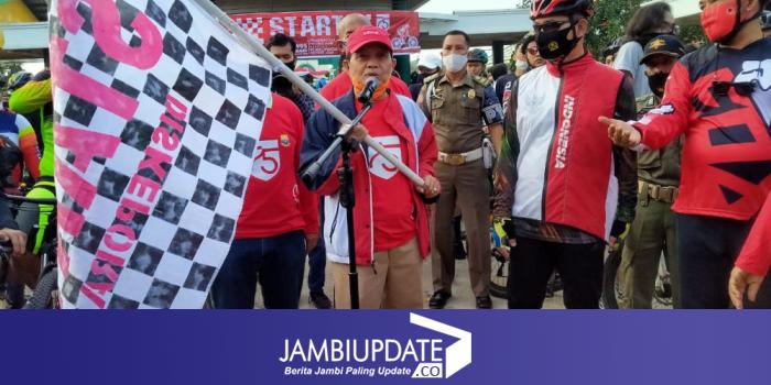 JAMBIUPDATE.CO, JAMBI -Gubenur Jamni Fachrori membuka rangkaian peringatan HUT RI gowes kemerdekaan di museum gentala Arasy, Minggu (23/8).