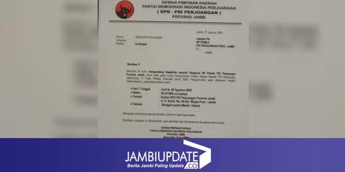 JAMBIUPDATE.CO, JAMBI- PDI Perjuangan dijadwalkan bkal mengumumkan arah dukungan tahap IV untuk Pilkada serentak Desember mendatang secara virtual, besok (28/8).