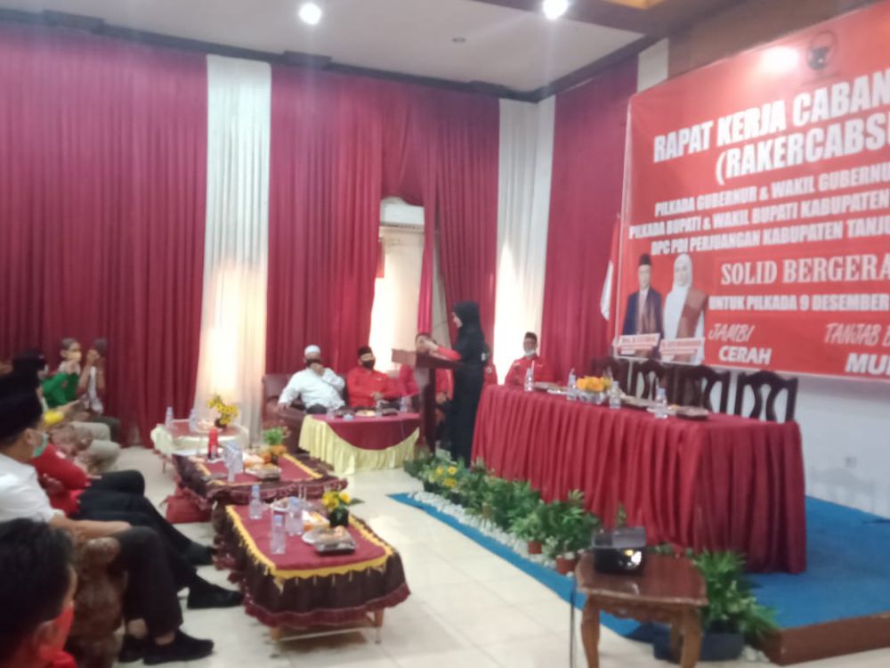 Pada Minggu (20/9/2020), Ratu Munawaroh menghadiri Rapat Kerja Cabang Khusus (Rakercabsus) PDIP Tanjab Tanjab Barat bersama Ketua DPD PDIP Provinsi Jambi, Edi Purwanto.