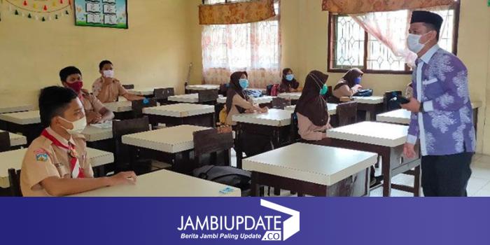 Proses beajar mengajar secara tatap muka di di SMPN 21 Tanjabtim, selama masa Covid 19.