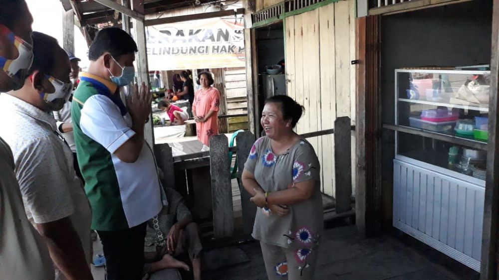 JAMBIUPDATE.CO, JAMBI- Calon Wakil Gubernur Jambi nomor urut 2 Syafril Nursal blusukan dan menyapa warga, pedagang dan pelaku Usaha Kecil Menengah (UKM) di Kampung Laut, Kuala Jambi, Tanjung Jabung Timur, Selasa 6 Oktober 2020.