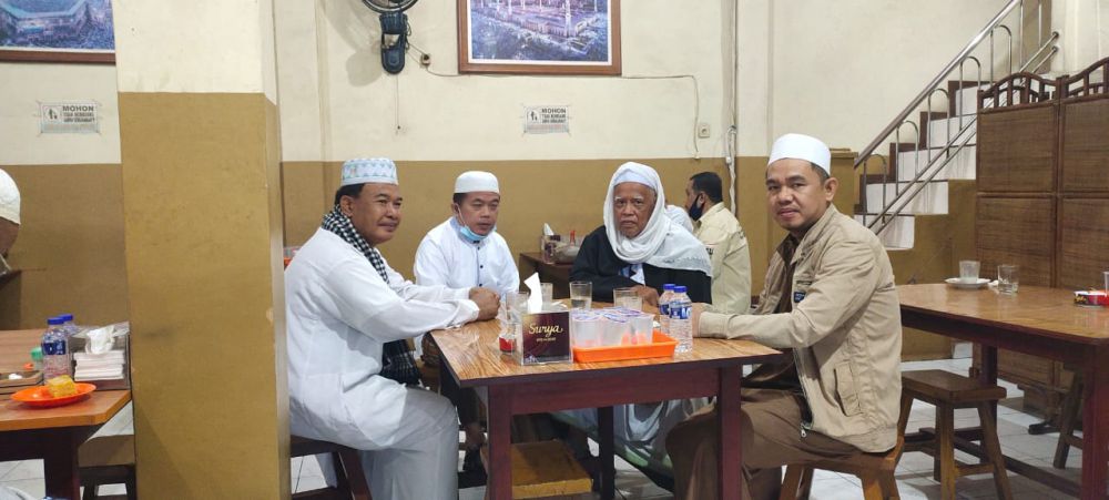 Setelah sholat Subuh berjamaah di Masjid Assa'adah, Al Haris bersama H Abdulrahman Sidiq dan Ustadz Bambang, sarapan dan bincang santai di warung kopi Saung Tawaqal Bukit Baling.
