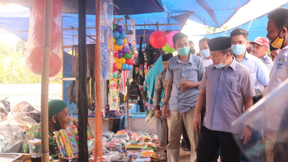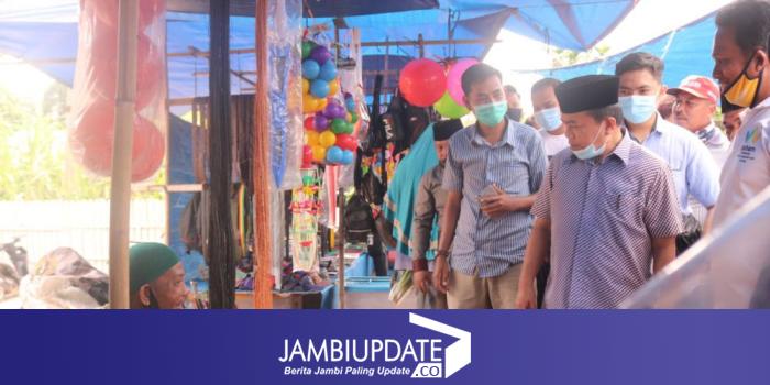 Di pasar desa Selat, Al Haris yang berpasangan dengan Abdullah Sani di Pilgub Jambi 2020 ini meninjau kondisi pasar yang dibuka setiap hari Minggu ini.