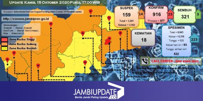 JAMBIUPDATE.CO, JAMBI - Sebanyak 4 orang Aparatur Sipil Negara (ASN) Pemerintah Provinsi Jambi dinyatakan positif Covid19 pada hari ini (15/10). Terdiri dari 3 orang dari Satuan Polisi Pamong Praja dan Damkar Provinsi Jambi dan 1 lainnya berdinas di kantor Gubernur Jambi.