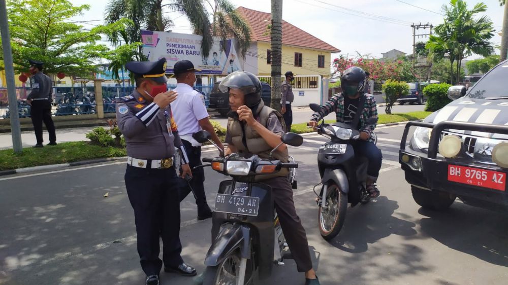 Sementara pengguna jalan lainnya yang terjaring tidak menggunakan masker, mengaku bekerja di salah satu rumah sakit di Kota Jambi. Hal ini membuat petugas geleng-geleng kepala.