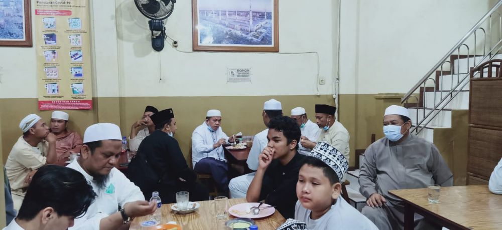 Usai sholat subuh, Al Haris didampingi Abdullah Hich dan beberapa warga, sarapan pagi sambil ngobrol santai.