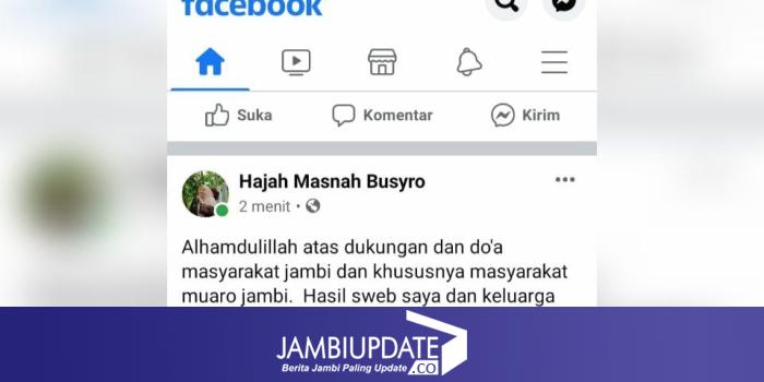 Cuitan ini mendapat respon positif dari para netizen, banyak yang memberikan Like dan berkomentar mengucapkan syukur atas kesembuhan Bupati perempuan pertama di Provinsi Jambi tersebut.(era)